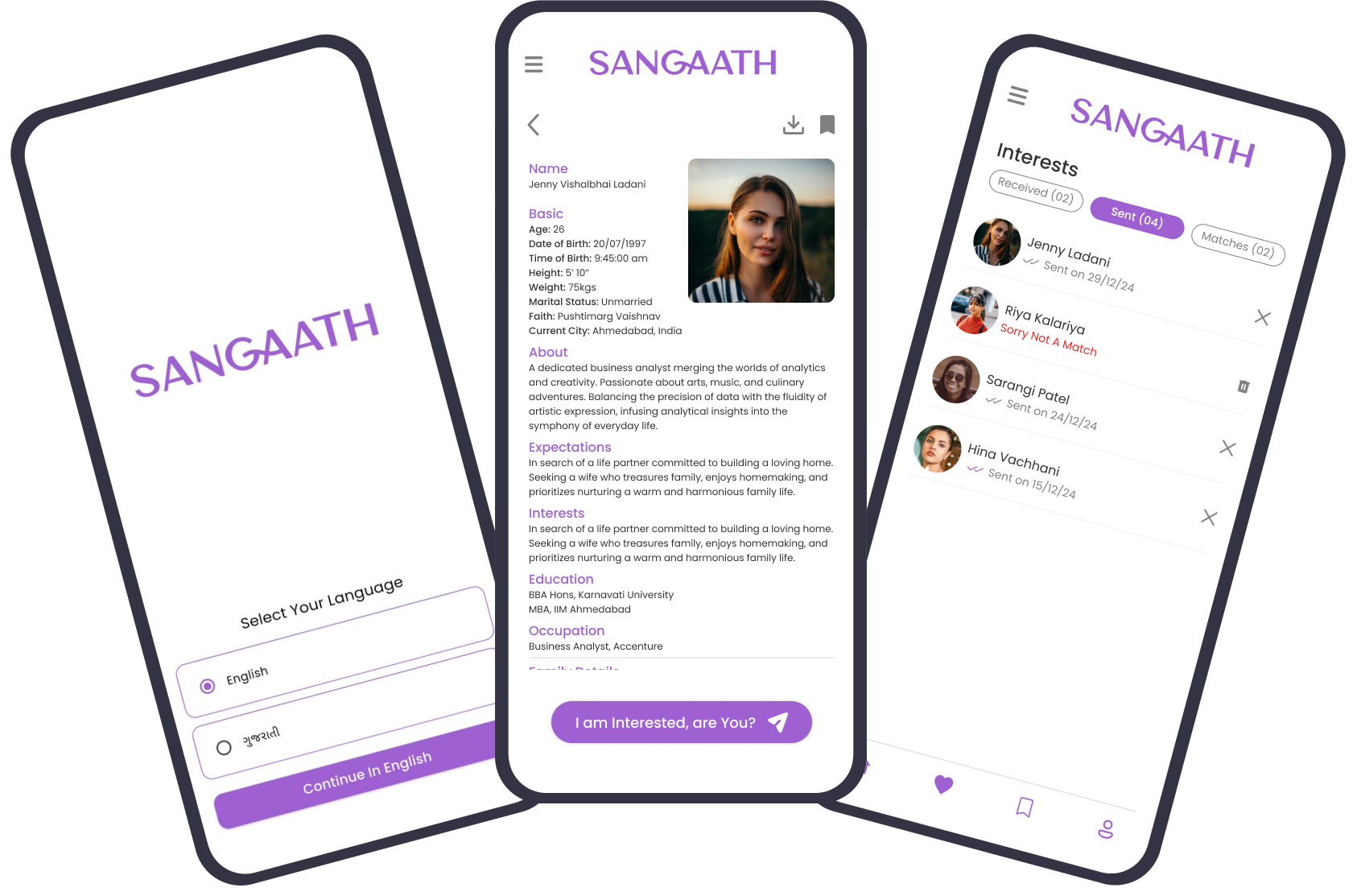 Our app offers full Gujarati language support. With a single click, switch to Gujarati and access all features, including browsing and managing biodatas, for a seamless experience tailored to Gujarati-speaking users